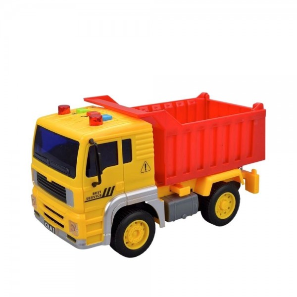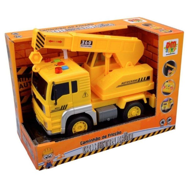 Caminhão de Brinquedo com guindaste, acabamento realista, emite luzes e sons diversos ao apertar os botões som de buzina, motor, ré. O guindaste pode ajustar altura até 21cm, possui um gancho e a base gira 360 graus. Com rodas movidas a fricção. Dimensões aproximadas: 12 cm de altura, 9cm de largura, 30 cm de profundidade Marca: DM Toys Recomendado para crianças a partir de 3 anos. Composição: plástico e componentes eletrônicos Caminhão de Caçamba construção a fricção. Este super caminhão caçamba construção possui luzes que acendem e emite sons semelhantes ao de verdade. Utiliza 3 baterias AG13 (Inclusas). **PRODUTO ORIGINAL** COMPRE AQUI!