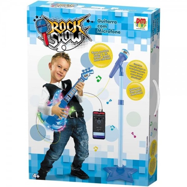 Guitarra Infantil Com Microfone Pedestal Rock Show Dm Azul UNICA